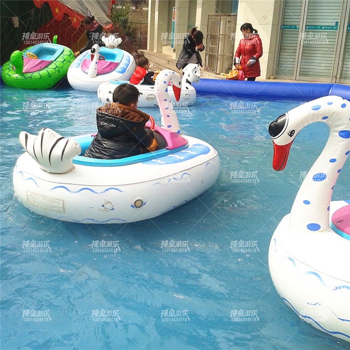 充气碰碰船特点:采用高级PE材料,添加抗UV材料,不管风吹日晒,不褪色。使用晶体离子阀控电池,免维护,环保安全。特指防水无刷电机,电流小,力大,高效率安全耐用。多种可爱小动物款型可供选择,外观时尚,色彩亮丽,操作方便。